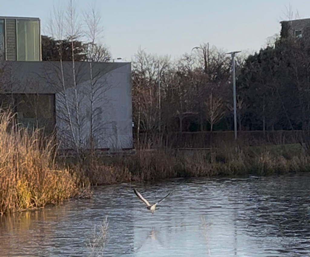 I continued my walk to the library but soon realized that it was closed, disappointing; however, excitingly, I stumbled across a large pond with many unfamiliar birds. Overall, the morning walk and my first introduction to campus was perfectly endearing. Despite my plans being curbed, the crisp air, early morning light, and green campus littered with sculptures painted a beautiful image of my new campus.